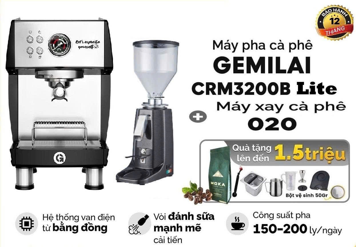 Combo máy pha Gemilai CRM 3200b Lite & máy xay 020